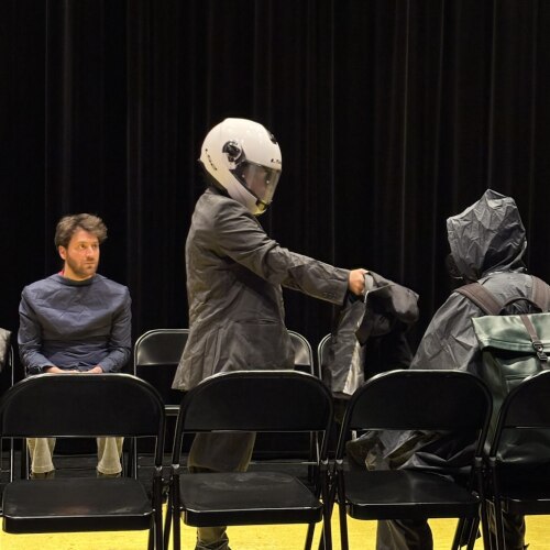 Display mapDans un hangar abandonné, une bande de solitaires effrayés par l’avenir se lancent dans la construction d’un parlement pour tenter de déjouer l’effondrement qui se dessine à l’horizon. Dans un futur indistinct, une bande de solitaires effrayés par l’avenir se retrouve dans un hangar en périphérie. Certains ont entendu un appel pour venir aider à la tenue d’une assemblée réunie pour déjouer l’effondrement qui se dessine à l’horizon. Mais sur place, il n’y a qu’un tas de chaises, quelques bâches et personne d’autre. Surmontant leur désemparement, ils se lancent eux-mêmes dans un chantier poétique pour construire ce parlement, accompagnés par une étrange radio trouvée dans les décombres.